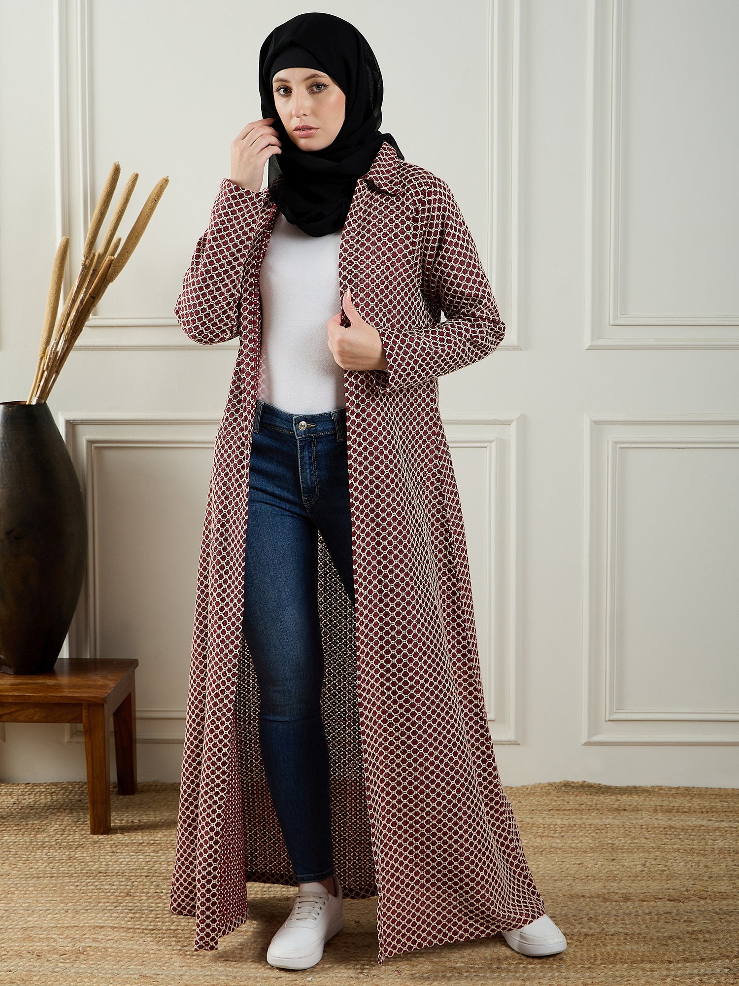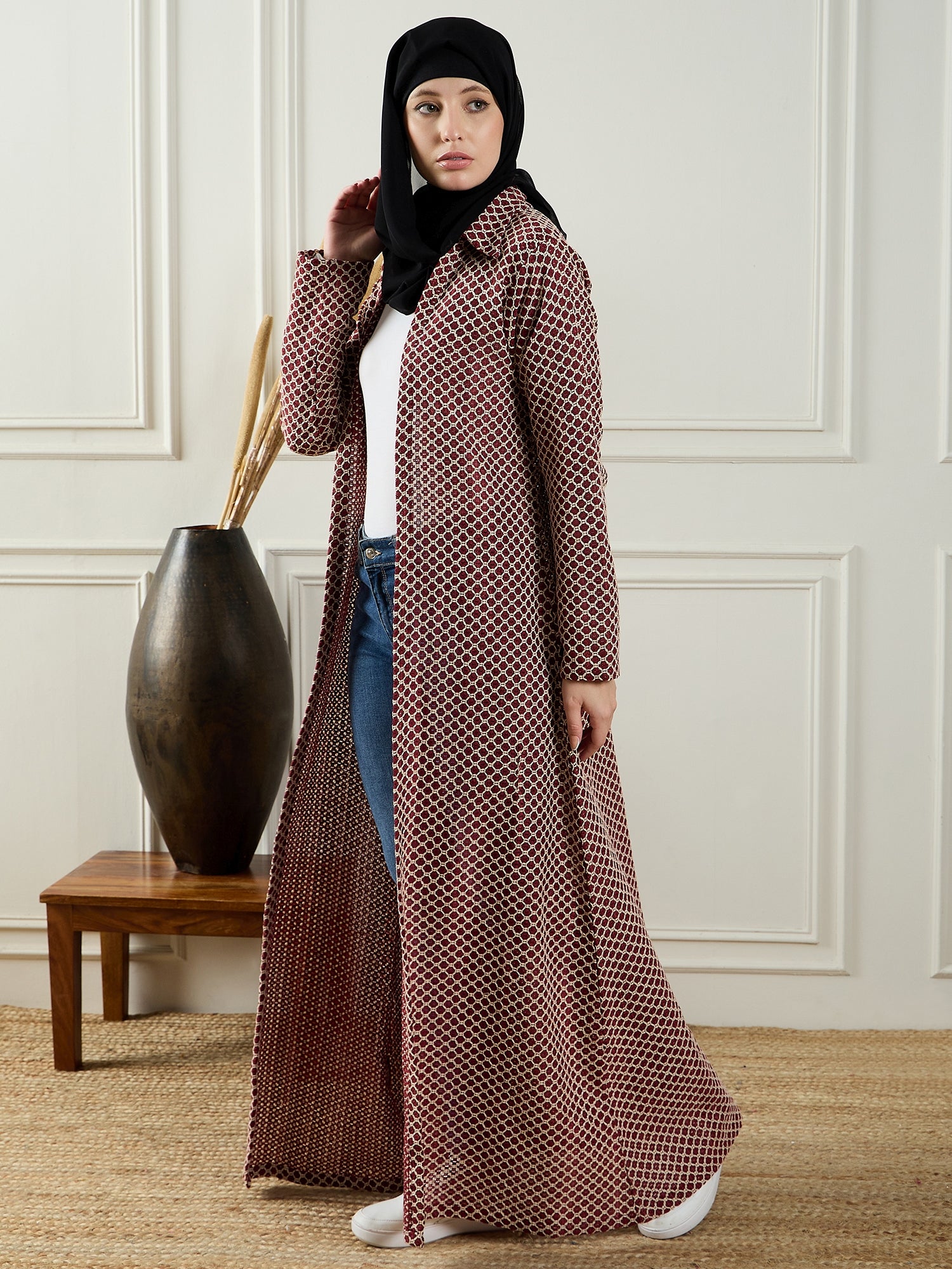 The Nabia Women’s Front Open Cotton Knitted Shrug with bell sleeves is designed for modest Muslim women, perfect for layering over other outfits. Its comfortable, lightweight fabric and modern design make it ideal for today’s fashion-forward women. This shrug effortlessly combines modesty with style, making it a versatile addition to any Islamic wardrobe for a chic, modest look.