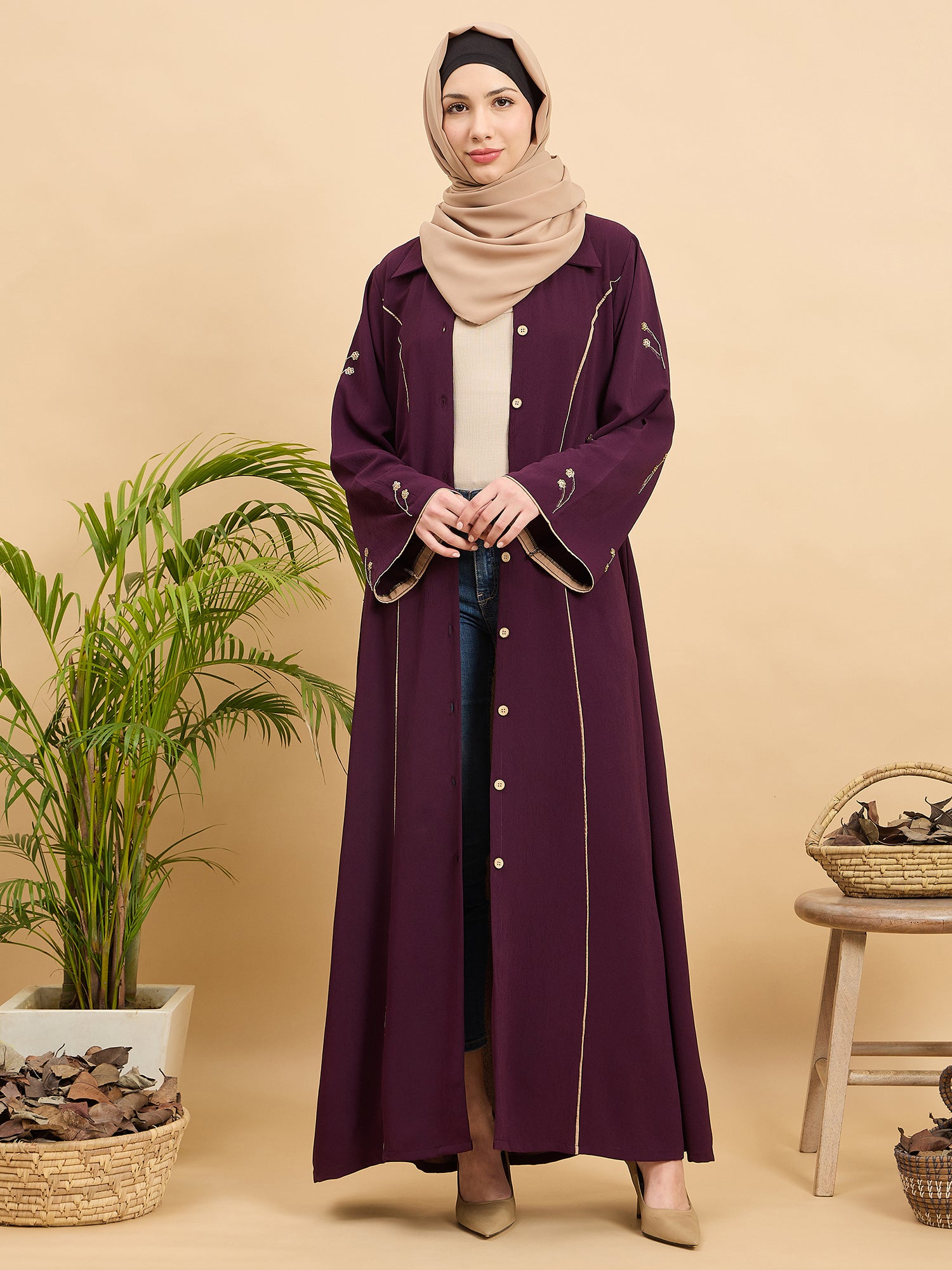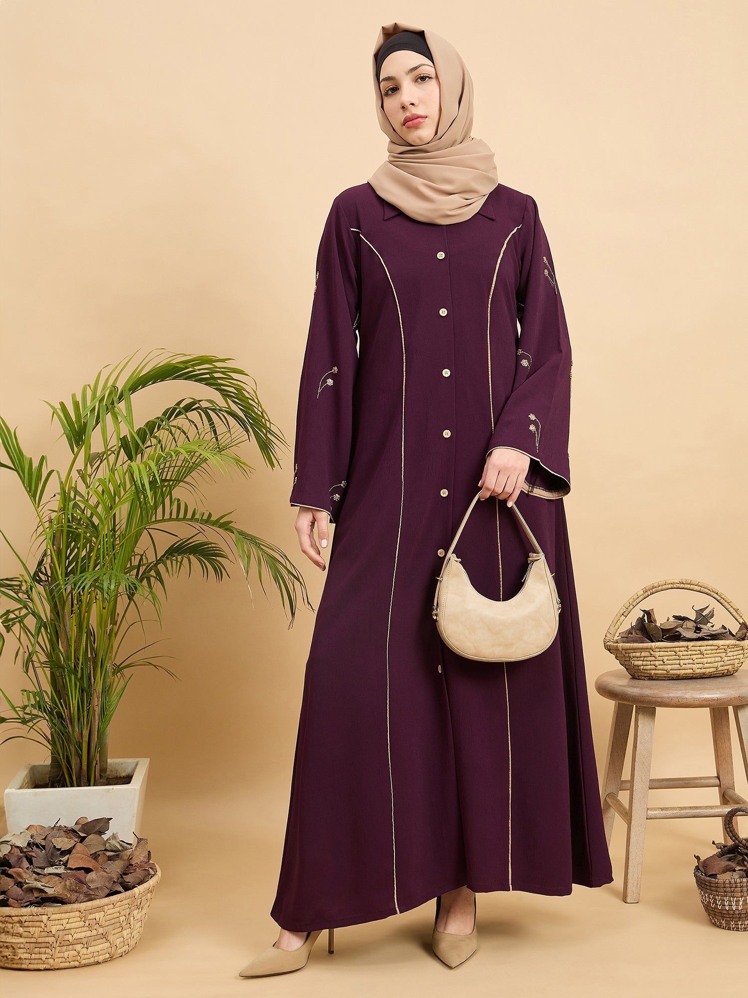 Upgrade your modest wardrobe with this luxury abaya burqa for women, crafted from premium cy crush fabric for a soft, lightweight, and flowy drape. Designed in a front-open style, it features elegant hand worked detailing and refined piping accents that add a graceful touch. This modest full-length abaya is perfect office wear, party, prayers, Ramadan, Eid, and formal occasions, offering timeless elegance, comfort, and sophisticated modest fashion.