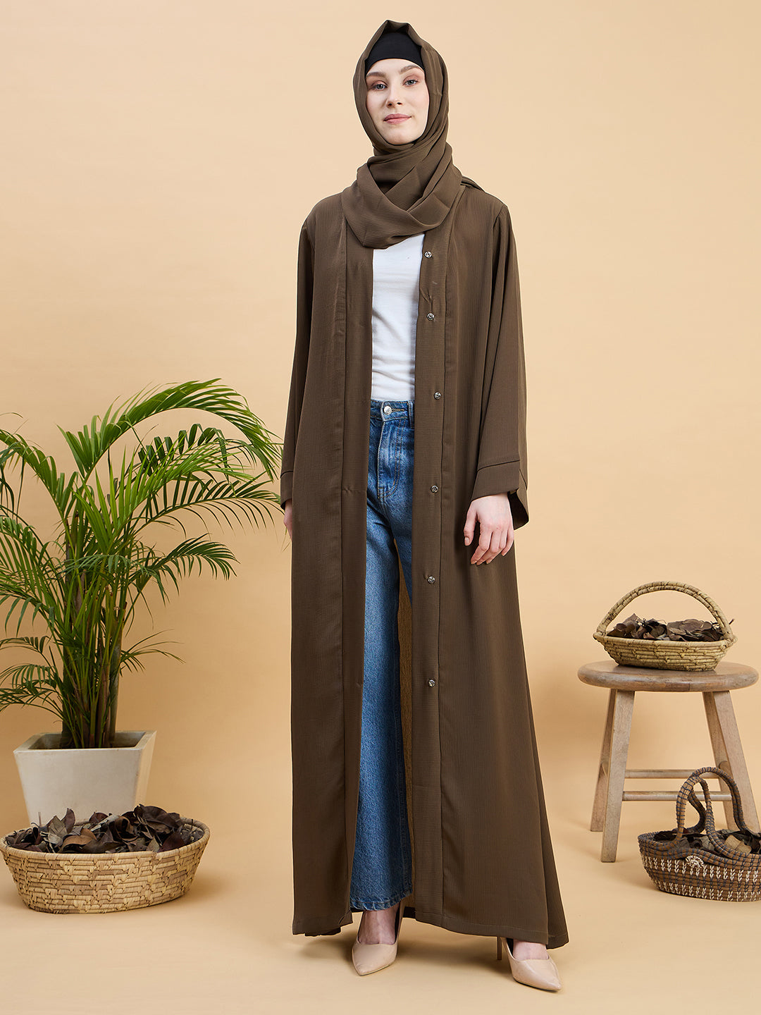 Elevate your modest style with this oat (khaki) dubai abaya, crafted from premium zoom fabric for a soft, lightweight, and elegant drape. Designed with a front open button closure, full-length silhouette, and relaxed fit, this front open abaya offers effortless layering and all-day comfort. Perfect for Islamic wear, daily wear, prayers, Ramadan, Eid, office, and formal occasions, this women’s Dubai style abaya blends timeless modest fashion with modern sophistication and graceful appeal.