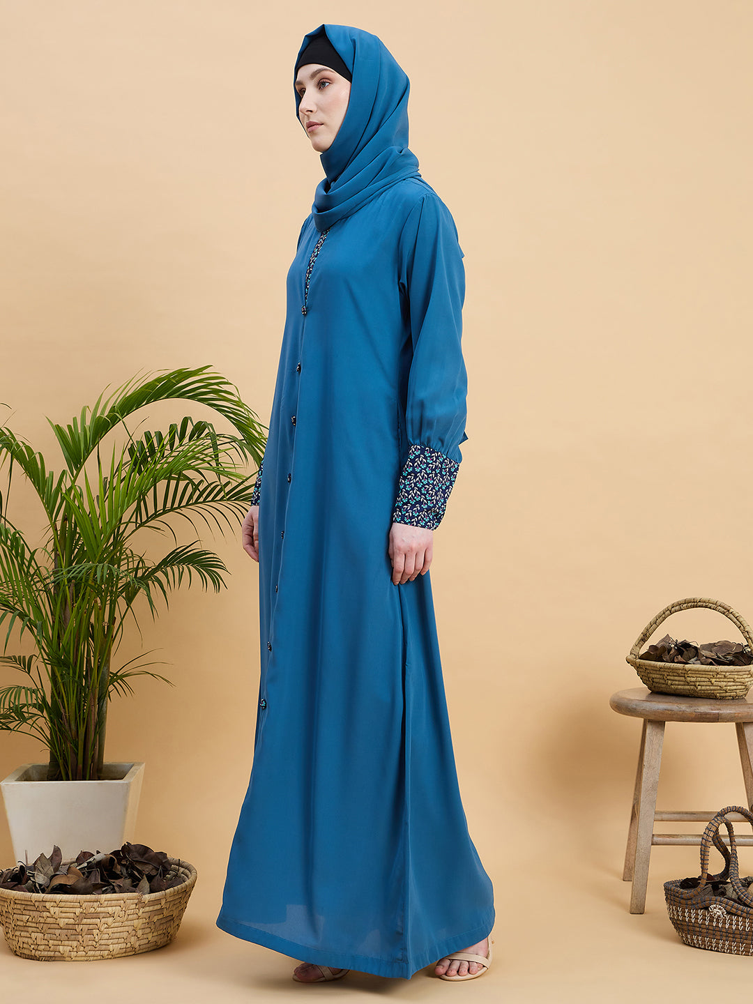 Refresh your modest collection with this sky blue abaya for women, made from premium Nida matte fabric for a soft, breathable, and elegant drape. Featuring a full-length, slip on closure, printed cuff detailing, and long sleeves, it offers stylish coverage and everyday comfort. Perfect for daily wear, office wear, prayer, Ramadan, Eid, mosque wear, and Islamic occasions, this women’s sky blue Nida matte abaya blends modern modest fashion with timeless grace.