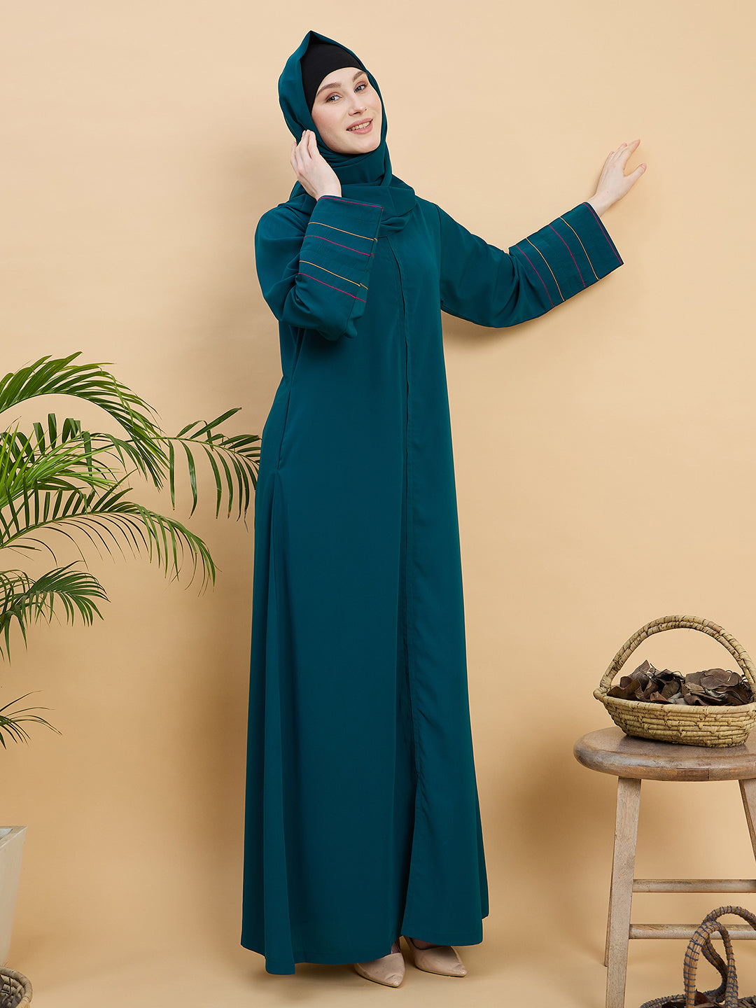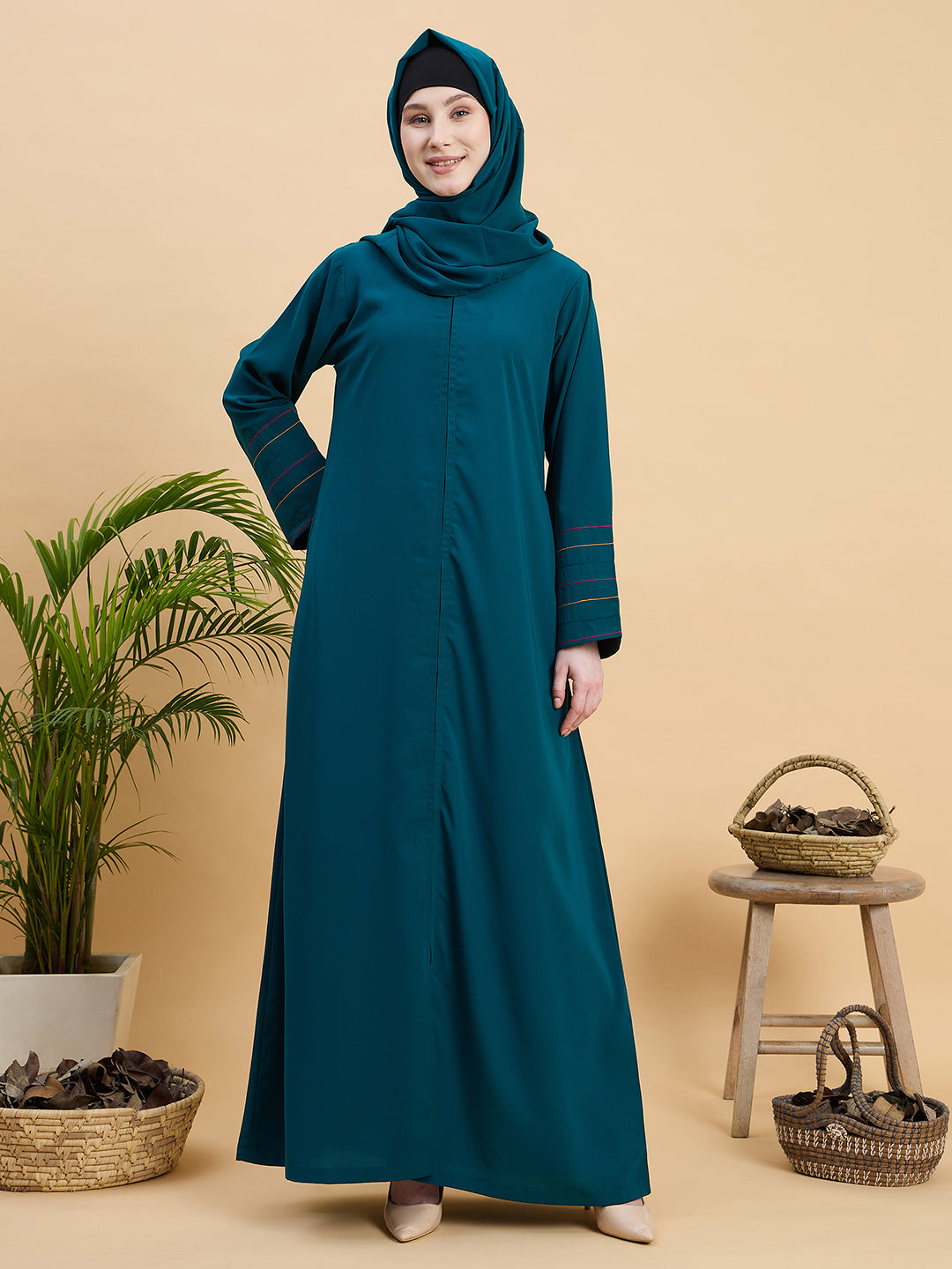 Upgrade your modest fashion collection with this bottle green abaya, made from premium Nida matte fabric for a soft, lightweight, and elegant drape. Featuring a full-length straight fit, closed front design, and full sleeves with subtle detailing, it offers comfort and modest coverage all day. Perfect for daily wear, office wear, prayer, Ramadan, Eid, mosque wear, and Islamic occasions, this women’s bottle green Nida matte abaya delivers timeless style with breathable comfort and durability.